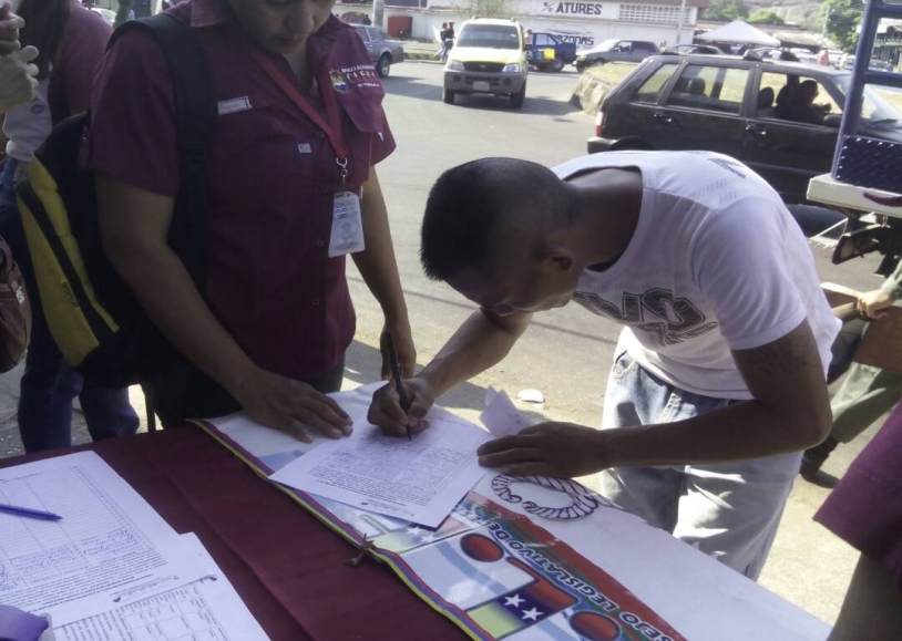 La Legisladora Mauligmer Baloa Presidenta de la Comisión de Salud del Consejo Legislativo del estado Amazonas, en compañía de trabajadores de este cuerpo colegiado, organizaron una jornada de recolección de firmas que avalarán un importante documento que solicita ayuda humanitaria al hermano país de Colombia.