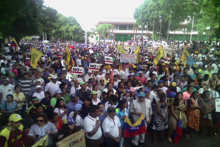 (Waka Noticias19/04/17)Desde tempranas horas de la mañana de hoy, simpatizantes de partidos de oposición, se concentraron en dos puntos de la ciudad, unos en la esquina del Liceo Santiago Aguerrevere y otros en la Avenida Orinoco; frente a la planta vieja, recorriendo en caminata bajo consignas en rechazo gobierno del Presidente Nicolas Maduro las principales avenidas de la ciudad rumbo a la Plaza Bolívar, donde IAPACU presento una dramatización de una escena de lo que fue el 19 de abril de 1810, para posteriormente dar sus palabras la diputada de la causa R, ante la Asamblea por el Estado Aragua, Mariela Magallanes.