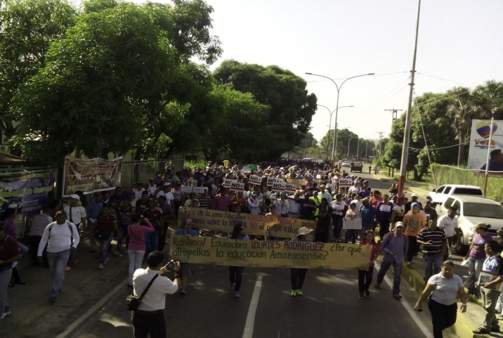 Este martes se realizó una protestas. Pese a no contar con representación en la Asamblea Nacional, habitantes de Puerto Ayacucho en el estado Amazonas marcharon hasta la sede del Poder Judicial para manifestar su rechazo a la posición a favor del poder del Tribunal Supremo de Justicia (TSJ) y a la Zona Educativa de la entidad para condenar el intento de transferir al menos siete escuelas estadales al Ministerio de Educación.