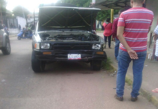 En la tarde de ayer aproximadamente a las 5:40 de la tarde, se registró un accidente de tránsito en el cruce de la Avenida Constitución con la Avenida Rómulo Gallegos, cuando un vehículo tipo LUV DMAX color bronce, se desplazaba en sentido hacia la Avenida Las Delicias, repentinamente en el cruce, por averías en los semáforos colisionó con un vehículo tipo TOYOTA STARLE color rojo.
