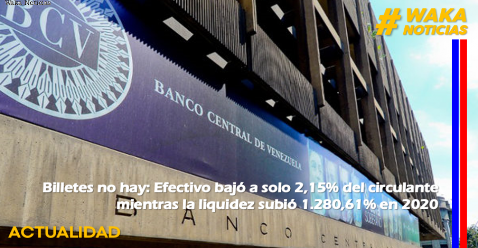 (Waka Noticias. Puerto Ayacucho, 11/01/2021).- El crecimiento de la liquidez monetaria excedió los pronósticos al cierre del mes de diciembre, a tal punto que el circulante ascendió a 584,6 billones de bolívares al corte del 1° de enero. En la última semana del año, el crecimiento fue de 9,12%.