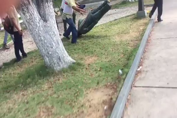 Waka Noticias.- Videos mostraron el momento en que una estatua del fallecido expresidente venezolano Hugo Chávez fue destruida este viernes en la localidad de Rosario de Perijá (oeste), en el marco de protestas opositoras contra el presidente Nicolás Maduro.