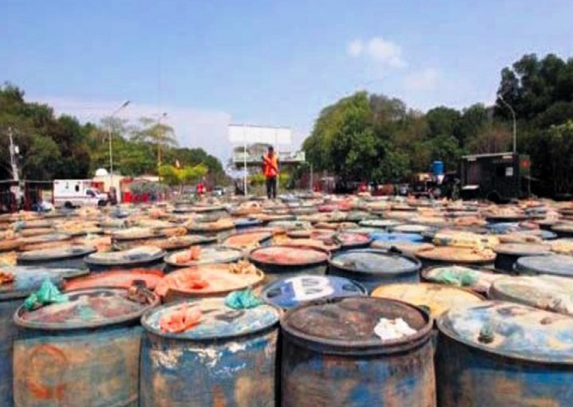 Los militares adscritos a la Escuela de Selva G/B Emilio Arévalo Cedeño de la Infantería de Marina, estaban a bordo de un vehículo Militar Tipo Beiben Truck, sin placas, asignado a esa unidad, transportando 12 tambores de color azul, con 2.640 litros de gasolina.