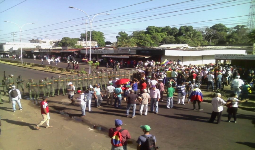 A partir de ese momento los manifestantes de la concentración del cabildo abierto empezaron a sumarse a los que enfrentaban a los cuerpos de seguridad por lo que cubrieron parte de la Av. Orinoco y a nivel del Rey David se consiguen con otro piquete de la GNB quienes aun seguían disparando perdigones y bombas lacrimógenas, sin embargo, por la cantidad de personas que se habían sumado a la manifestación, los funcionario empezaron a replegarse en sentido al semáforo de la esquina caliente donde se mantuvo la batalla campal entre piedras y perdigones por bastante tiempo hasta que los funcionarios se retiraron hacia el hotel Cosmopolita tomando estos igual parte de la av. 23 de enero, donde tuvieron resistencia en la esquina de Saimasur y la esquina del banco Provincial, ya que desde allí los funcionarios de la GNB protegían el comando de Zona de la GNB, hasta los momento se han mantenido así. Hasta esta hora de la tarde 1:30Pm, logrando despejar a los manifestante de las av. 23 de enero.