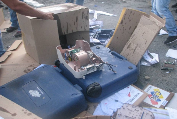 Un grupo de más de 150 encapuchados entró a un centro de votación ubicado en Tovar y sustrajo las maquinas de votación. El hecho se registró en las afueras del preescolar Ananías Avendaño, en el sector Quebrada Arriba de Tovar, la tarde de este viernes. Las máquinas y el material electoral fueron destruidos.