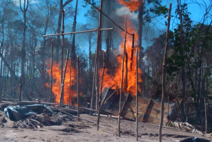 Los militares quemaron todas las estructuras realizadas por los garimpeiros, también tubos y mangueras, utilizadas para extraer oro, en las imágenes se puede apreciar la destrucción de la naturaleza producto de la minería ilegal que se está viviendo en nuestro territorio amazonense.