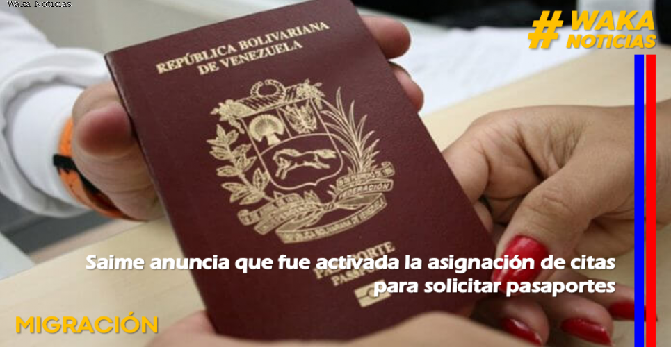 (Waka Noticias. Puerto Ayacucho, 24/01/2021).- A través de su cuenta en Twitter, el Servicio Administrativo de Identificación, Migración y Extranjería (Saime) anunció que fue activada la asignación de citas para solicitar pasaportes.