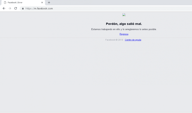Aproximadamente a las 2:25 pm la pagina se cayó durante 9 minutos, arrojando el siguiente error "Perdón, algo salió mal. Estamos trabajando en ello y lo arreglaremos lo ante posible" , se desconoce actualmente la falla o simplemente si se trataba de actualizaciones en sus servidores, se espera la versión oficial de la compañía Facebook INC, en cuanto a la falla presentada esta tarde.
