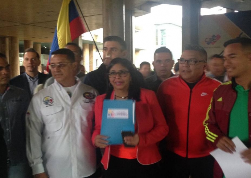 Aunque la presidente del Consejo Nacional Electoral, Tibisay Lucena, no había hecho ninguna aparición pública desde hace más de 100 días, ayer recibió los estatutos del movimiento Somos Venezuela, junto a la rectora Tania D’ Amelio, de la mano de la coordinadora Delcy Rodríguez. La también presidente de la ANC voló desde República Dominicana, donde se realizaba la negociación con la oposición.
