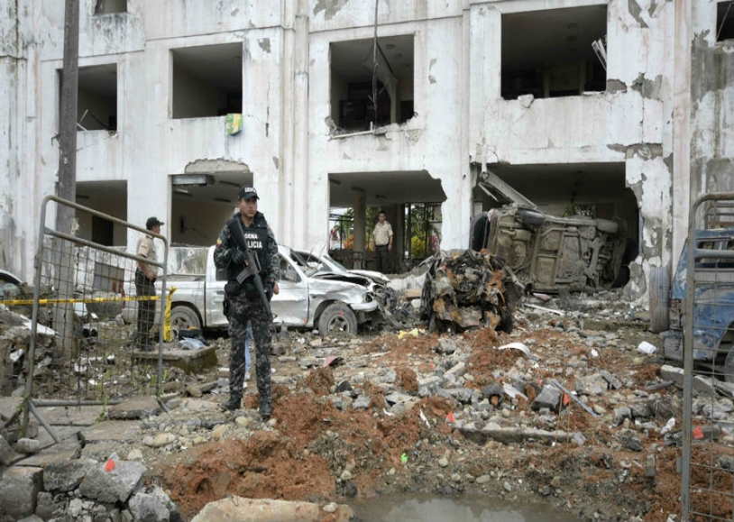 Por primera vez en la historia ecuatoriana, el sábado estalló un carro bomba frente al destacamento de Policía de la localidad costera de San Lorenzo, en el límite con Colombia, que causó 28 heridos, entre ellos cinco policías, y la destrucción parcial de 27 viviendas.