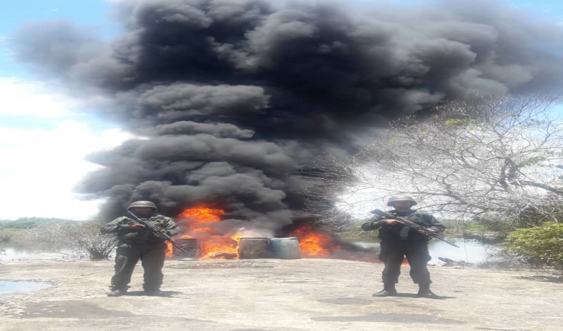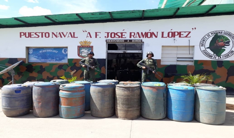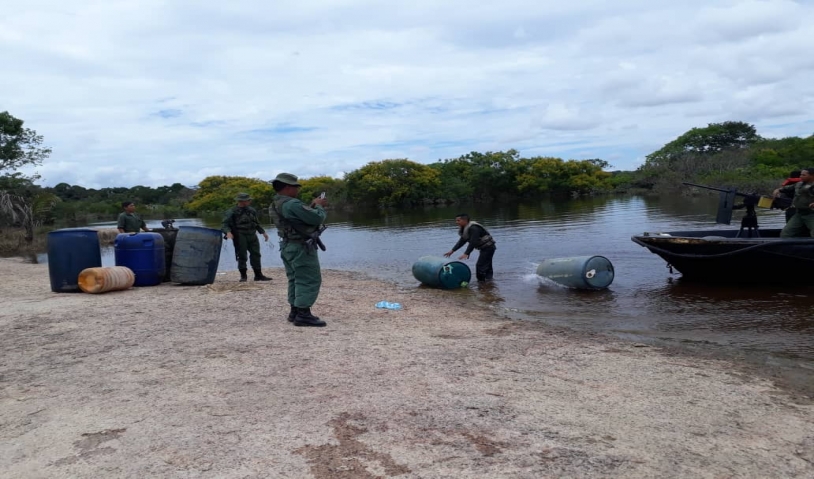 Infantería de marina logró la incautación de 3080 litros de presunta gasolina y 440 litros de gasoil mediante un patrullaje fluvial y terrestre.
