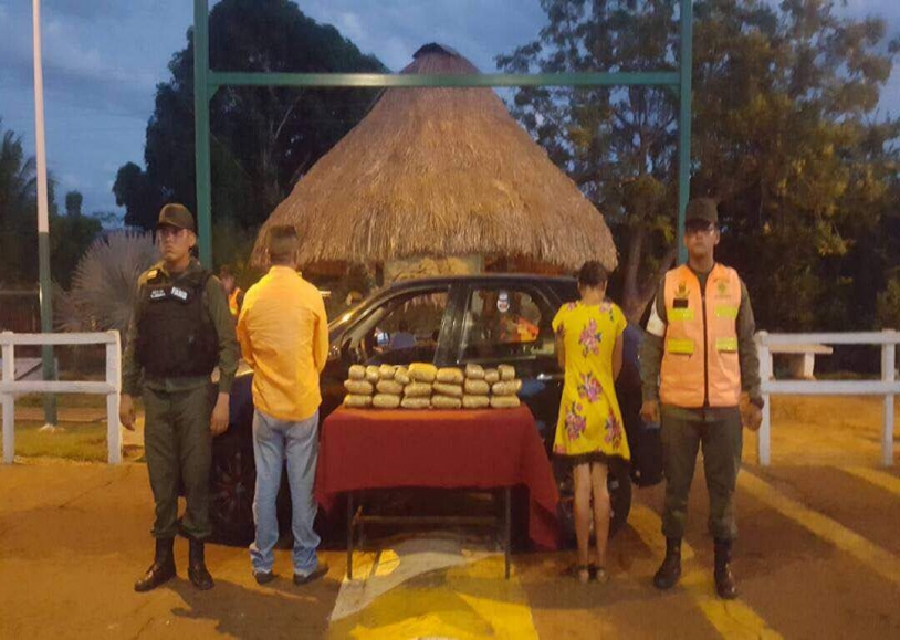 Puerto Ayacucho.- En el Puesto de alcabala de la Guardia Nacional "Pozon de Babilla", efectuaron la aprensión del Ciudadano Tortoza Rivero Carlos Gabriel, CIV-25.711.557 y la ciudadana Nelly Marizol Tortoza Rivero, CIV-23.698.494, quienes se trasladaban en un vehículo marca Fiat Palio, placas AF535Uk, color verde, procedentes de Pto. Ayacucho, Edo amazonas con destino a San Fernando, Edo. Apure y durante la inspección del vehículo se les incautaron veintidós (22) envoltorios tipo panela de color marrón, contentivas en su interior de presunta droga denominada Marihuana, con un peso bruto aproximado de nueve kilos con quinientos cuarenta y cinco gramos (9,545 Kgs.) Dos (02) detenidos, la GNB continua las labores en nuestro estado con el fin de desmantelar las organizaciones delictivas.