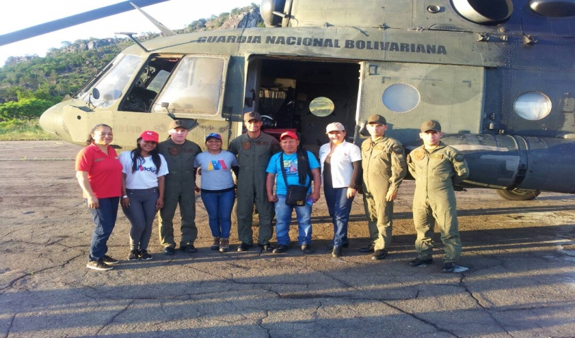 Yamileth Mirabal, viceministra para el Hábitat, Tierras y Desarrollo Comunal con Identidad para los Pueblos Indígenas, agradeció el apoyo de la Fuerza Armada Nacional Bolivariana por el traslado aéreo de los rubros e insumos para los hermanos indígenas de esta comunidad.