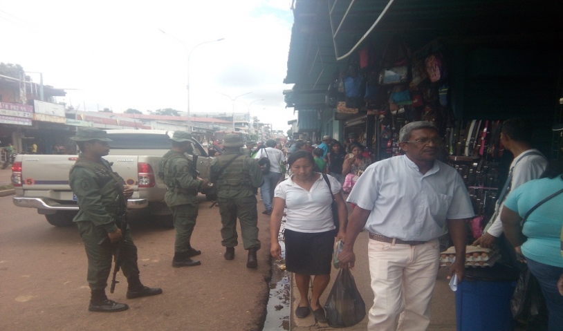 Puerto Ayacucho.- El día de hoy un grupo de militares pertenecientes al Ejercito Bolivariano tomaron el control de la av. Orinoco a la altura del mercado el pescado y el mercado 60 aniversarios para controlar la venta de comida subsidiada por el gobierno nacional.