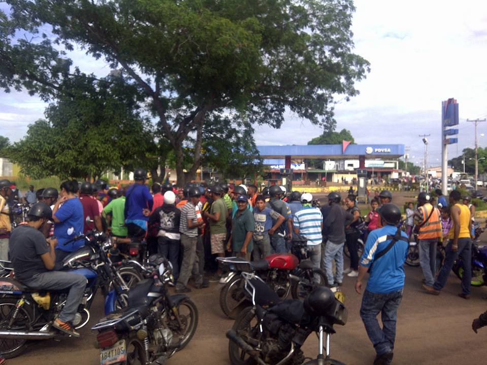 Los motorizados, en su mayoría moto taxistas alegaban la discriminación que existe con ellos, ya que se le ha asignado solo, un lado de un surtidos para todos los motorizados y en una sola estación de servicio, que ha generado como consecuencia largas e interminables colas que superan las 4 horas cuando hay gasolina, no permitiéndole ejercer sus actividades cotidianas y sobre todo de trabajo que es de donde mantienen a su familia, por esta razón decidieron trancar la vía publica hasta que se le dé solución a su problema.