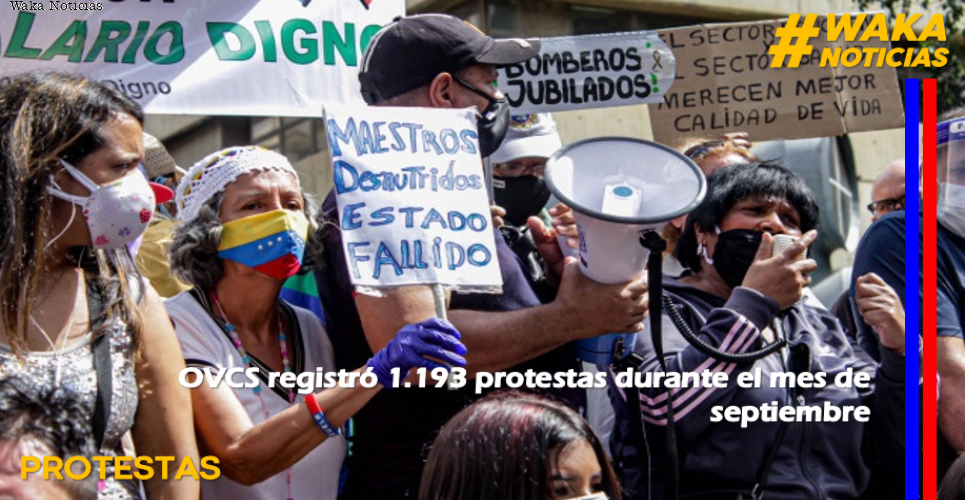 (Waka Noticias. Puerto Ayacucho, 10/10/2020).- El Observatorio Venezolano de Conflictividad Social (OVCS) registró 1.193 protestas durante septiembre, un aproximado de 40 diarias, ubicándolo como el mes con más protestas del 2020.