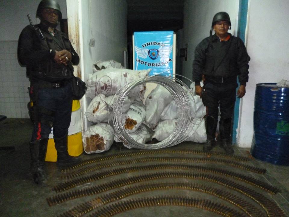 El total de lo decomisado fueron las 6 correas de balas calibre .50, 18 sacos de hongos, 1 rollo de cable de tendido eléctrico y dos tambores con combustible (Gasolina y Gasoli), objetos que de inmediato fueron trasladados hacia el Cuerpo de Policía en compañía de la Dirección General de Contra Inteligencia Militar (DGCIM).