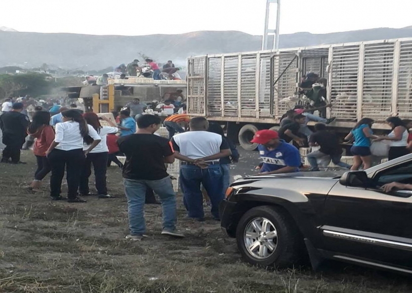 Un camión de pollos vivos fue saqueado la mañana de este martes en la Carretera Nacional, específicamente en la salida de Villa de Cura del estado Aragua.