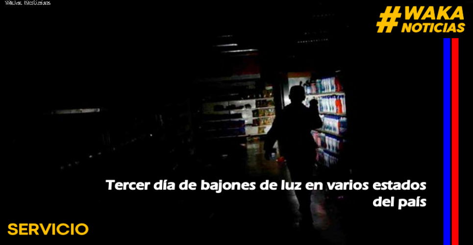 (Waka Noticias. Puerto Ayacucho, 27/09/2020).- Por tercer día consecutivo se registró un bajón de luz en varios estados del país. Usuarios en redes sociales denunciaron que entre las entidades afectadas se encuentran Distrito Capital, Miranda, Cojedes, Zulia y Aragua.