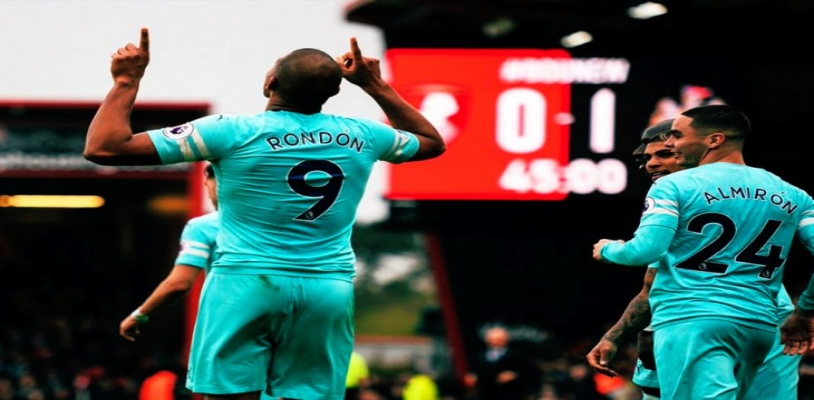 Salomón Rondón llegó a nueve goles en la Premier League, esta vez ayudó a que su equipo empatara 2-2 a Newcastle con AFC Bournemouth.