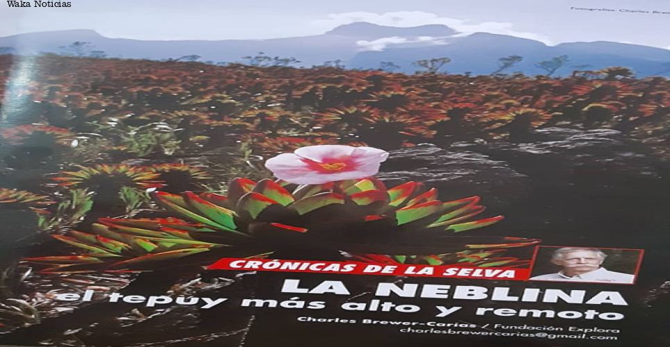 Articulo del domingo / Luis Betancourt Montenegro. Leyendo esta tarde un extraordinario artículo del explorador Charles Brewer-Carías, para la Revista Rio Verde, pude conocer -y lo comparto con ustedes- que en el Amazonas venezolano (Mpio. Río Negro - extremo sur de Venezuela), se ubica el tepuy más alto y remoto de toda Suramerica. Se trata del Cerro "La Neblina", con 3.070 mts. de altura y con un diámetro de 58 Km2, extensión que se comparte entre Brasil y Venezuela.