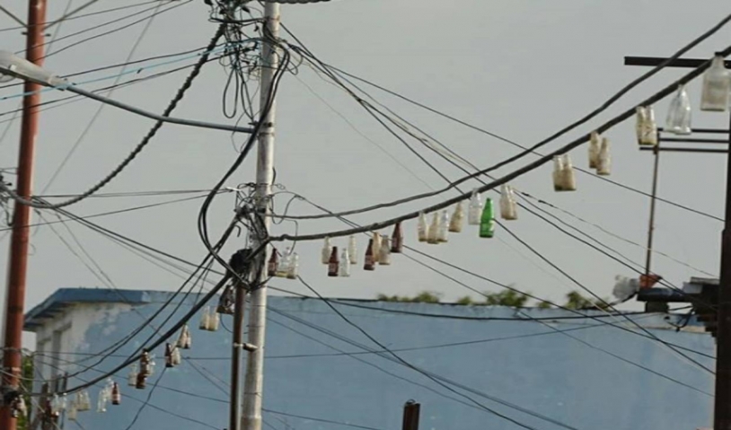 Las botellas tienen como función mantener alerta a los habitantes de la comunidad. Los ciudadanos explicaron que de esta forma podrán actuar cuando alguien intente llevarse el sistema de cableado, puesto que las botellas sonarán al moverlas.