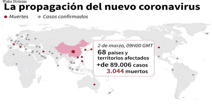 (Waka Noticias. Puerto Ayacucho, 02/03/2020).- La epidemia del nuevo coronavirus, que este lunes 2 de marzo superó el balance de 3.000 muertos en el mundo, continúa provocando importantes consecuencias en todo el planeta, sobre todo económicas, con riesgo de recesión en Alemania e Italia y una caída del crecimiento mundial.