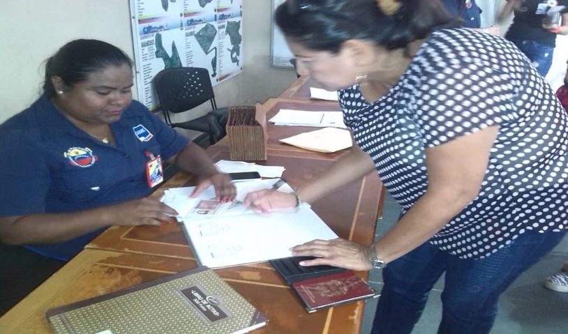 En la sede del Comando de Zona número 63, de la Guardia Nacional Bolivariana, antiguo Core 9. El equipo de funcionarios del Servicio Administrativo de Identificación,Migración y Extranjería, (SAIME), estubo entregando la cédula laminada a los usuarios, además de las prórrogas y Pasaportes. Este trabajo se desarrolló desde el martes pasado, hasta el día de hoy viernes 8 de febrero.