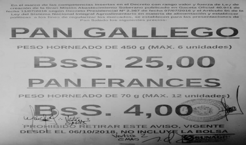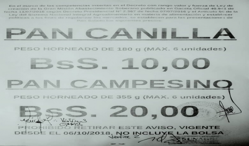 Waka Noticias 06/10/2018.- De acuerdo a nueva gaceta oficial publicada en panaderías de Amazonas el día de hoy, el pan se incrementó en 100% su valor.