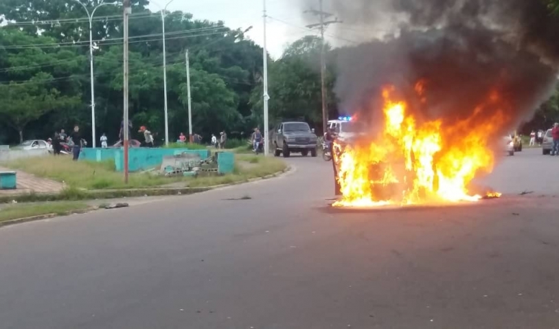 Al final de la tarde del día de hoy, un vehículo que giraba en la redoma Autana, al parecer de manera accidental comenzó a incendiarse por completo.